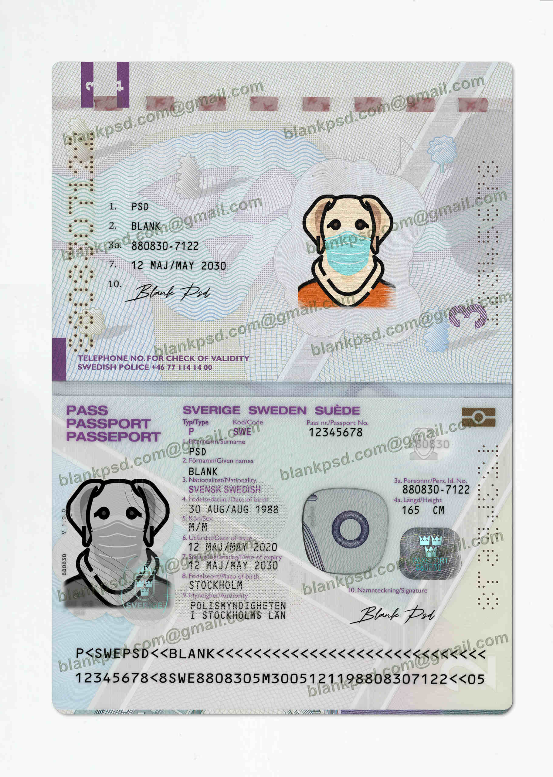 You can edit Sweden Passport Psd and put any : name, pp number, iss date, expire date, date of birth, change photos..etc.
